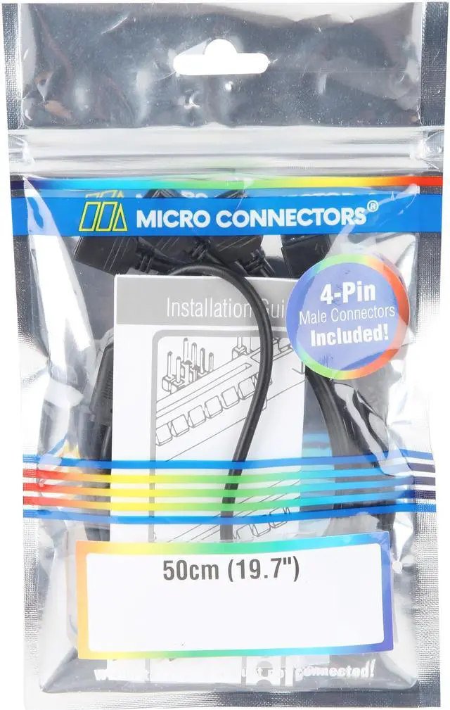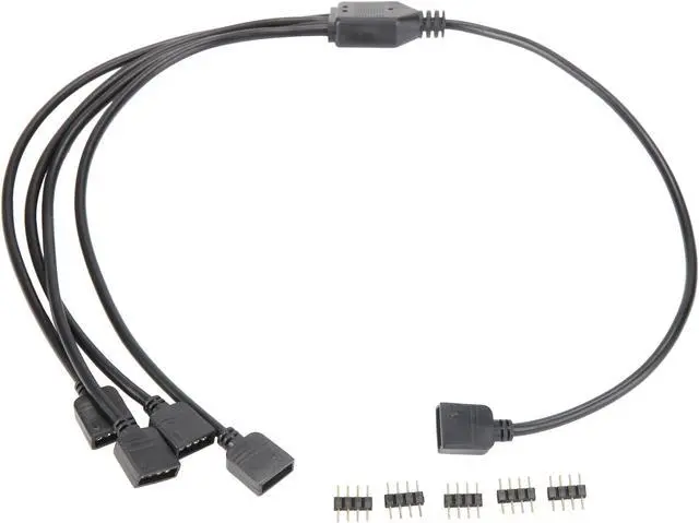 | Features | Compatible with 5050/3528 4-pin RGB LED strip lights Compatible with 4-pin RGB LED fans Connects up to 4 RGB lights or fans to a single source Works with 4-pin RGB or 5-pin RGBW header Males pins included for convenience Flexible PVC material for easy routing in tight spaces Lengths range from 30 to 50cm |