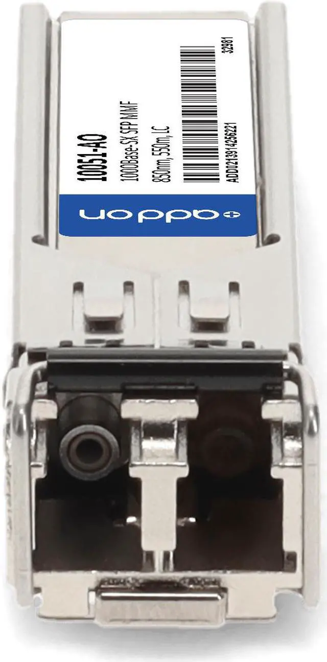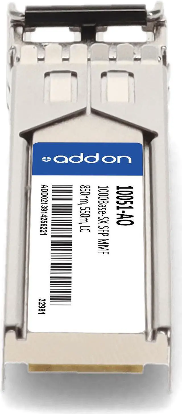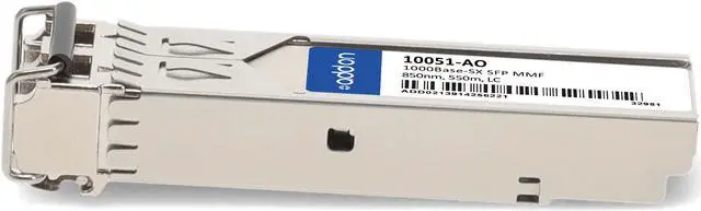 AddOn's industry-standard SFP is a hot-swappable input/output device that plugs into a Gigabit Ethernet slot, linking the port with the fiber-optic network. The AddOn 10051-AO fully complies with the IEEE 802.3z 1000BaseSX standard. AddOn's transceivers (GBIC, SFP, XFP and XENPAK) are 100% compliant for all of our networking product lines. AddOn transceivers are factory loaded with OEM specific configuration data required for networking compliance. These transceivers initialize and perform identically to the OEM transceivers and can be mixed and deployed with other OEM or 3rd party transceivers, for seamless network performance.