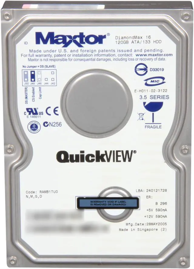 Maxtor DiamondMax 16 120GB 5400 RPM IDE Ultra ATA133 / ATA-7 3.5" Internal Hard Drive