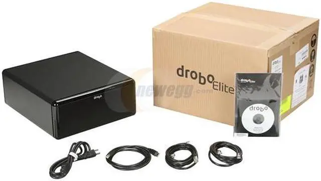 The Data Robotics DroboElite Storage array holds up to eight hard drives, which can be added at any time. The enclosure supports hard drive sizes of up to 16TB on a single volume, so you'll be forward-compatible as disk sizes increase. You can use combinations of SATA drives of any size to manage your storage needs. DroboElite uses the revolutionary BeyondRAID storage technology to protect your data against hard disk crash. When there is more than a single disk in your DroboElite, your data is safe and backed up.