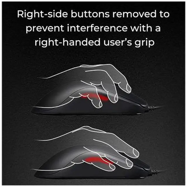 | Features | Symmetrical right-handed mouse Mouse cable attachment point is raised at an angle 3360 sensor Perfect lift-off distance Plug and play (No driver needed) 400 / 800 / 1600 / 3200 DPI adjustment Adjustable USB report rate 125 / 500 / 1000 Hz |