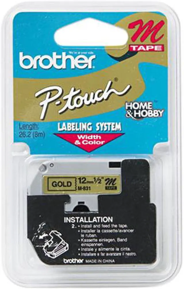 Create attractive labels for indoor use at home, office and school. Best for flat, dry surfaces. Perfect for all custom indoor labeling needs. Label Size - text: 1/2" x 26 1/5 ft.; Label Color(s): Gold; Machine Compatibility: Brother P-Touch® PT-65, PT-70, PT-80, PT-85, PT-90, PT-100, PT-110; Printed Text Color(s): Black.