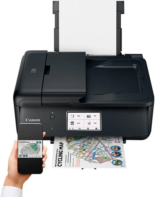 When you need a compact home office printer that can handle all your work needs, the PIXMA TR8620 has you covered. With front and rear paper feeding, a 5-Individual Ink System, 4.3” LCD Touchscreen, and impressive wired and wireless connectivity options, you’ll be able to do it all. The PIXMA TR8620 can easily transition from scanning a multi-page contract with the built-in Auto Document Feeder to printing double-sided homework assignments from online classrooms systems, or a family photo wirelessly from your smartphone. Whether it’s printing documents and reports, or faxing and scanning, the PIXMA TR8620 is the ultimate compact home office printer that’s big on performance and productivity.