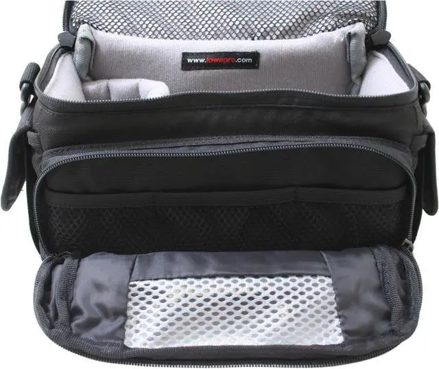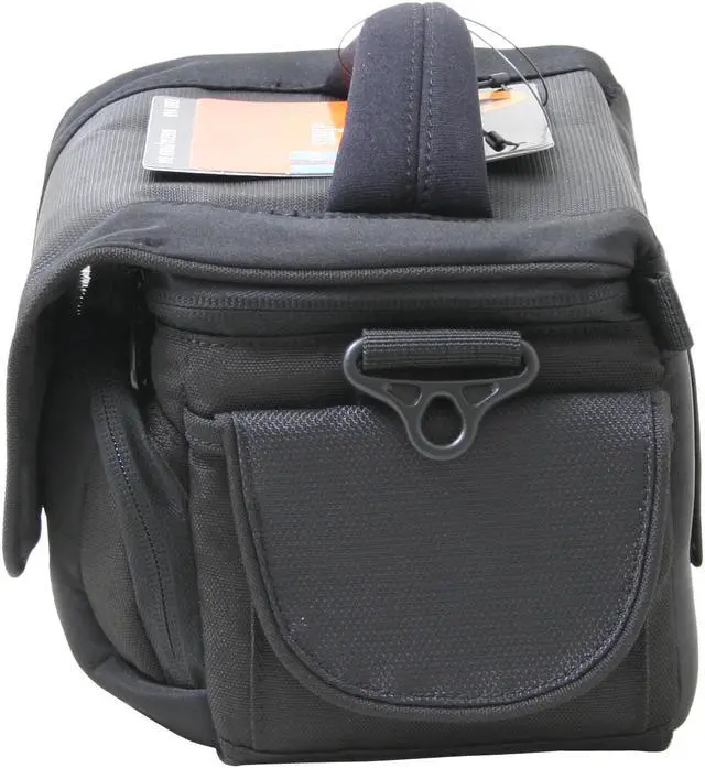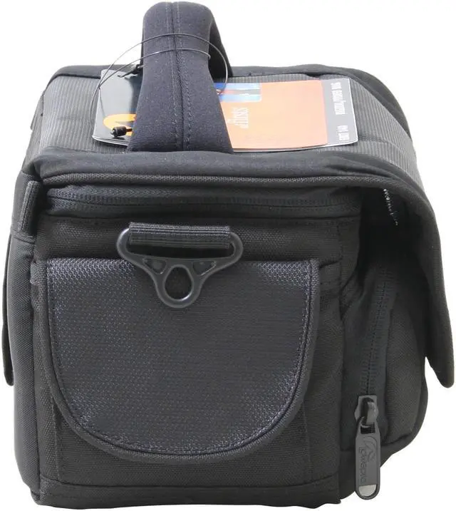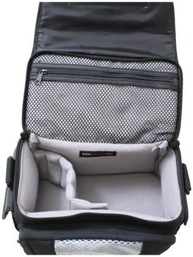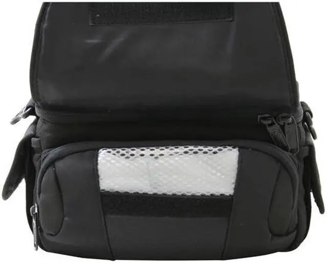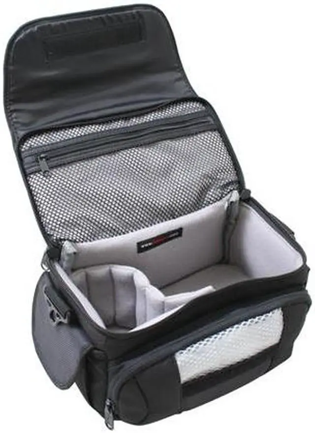 | Features | Flexible bag with comfort-grip handle, shoulder strap and belt loops. Padded interior; adjustable divider; lots of pockets and a double security with both zipper and Velcro closures. |