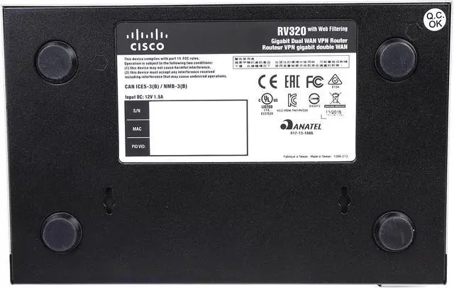 Cisco RV320 Dual Gigabit WAN VPN Router with license-free web filtering