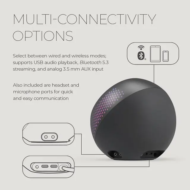 MULTIPLE CONNECTIVITY OPTIONS?- Enjoy both wired and wireless connectivity on the Creative Pebble X Plus; connect via USB for digital audio, stream wirelessly with Bluetooth 5.3, or go analog via universal 3.5 mm AUX input. Together with dual communication ports for headset and microphone, enjoy a quick switch for private listening and effortless comms when needed
