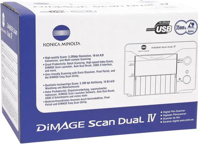 | Features | 3,200 dpi, 3-Line Color CCD, Faithful Image Reproduction, High-Speed Scanning, Auto Dust Brush, 100% Field of View Scanning, Quick Scan and Batch Scan, Multi-Sample Scanning, Simple, Quick Operation -- Easy Scan Utility, Slim, Attractive Design PC and Mac compatibility |