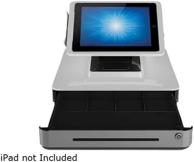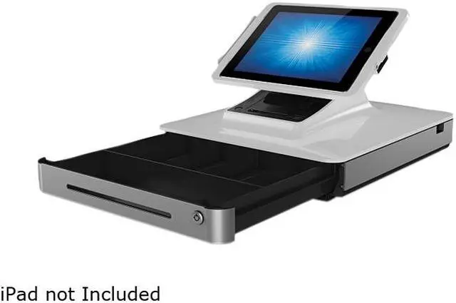 All-in-one, Elo PayPoint for the Apple iPad integrates cash drawer, credit card reader, barcode scanner, receipt printer, and customer facing display, for your favorite Apple iOS point-ofsale (POS) software application. The flip-for-signature docking tray for the Apple iPad encourages shopper engagement and electronic receipt delivery. Retail peripheral expansion is supported by an additional serial port. iPad charging supported when docked.