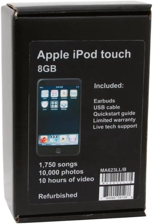 Built-in 8GB Flash DriveThe iPod touch (Model MA623LL/B) with built-in 8GB flash drive stores 1750 songs, 10 hours of video or tens of thousands of photos, so you can take a complete collection of your favorite media wherever you go.