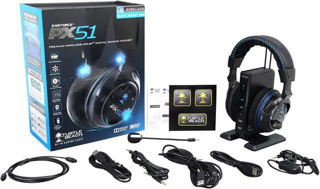 To compete with the best players, you need the best equipment. PX51 gives you the Turtle Beach audio advantage with interference-free, Dual-Band Wi-Fi Wireless and powerful, Dual-Stage Audio Processing for immersive Dolby® Digital Surround Sound. Stream music to your headset via Bluetooth®, enjoy incredible theatre audio with the new Movie preset and take your headset anywhere connected to your phone, tablet or portable game system. With up to 15 hours of continuous play from the rechargeable battery, you'll play longer and rise to the top of the leaderboards even faster. With over 35 years of audio experience, the PX51 is the most advanced gaming audio system Turtle Beach has ever created.