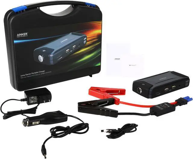 | Features | Start your engine and charge your gadgets anywhere. A Real Life Saver Make sure you and your loved ones can get home when stranded. This will jump your car up to ten times on a single charge. Advanced Safety We've taken safety to another level, protecting you and your devices against surges and short circuits, as well as inverse current. Ultra Compact Unlike traditional bulky jump starter packs, the Anker is small enough to store in your glovebox, and light enough to pack in your bag. 2X Powerful USB Ports Whether for emergencies or everyday use, charge phones, tablets and other devices at speeds of 2.1 amps or 1 amp. |