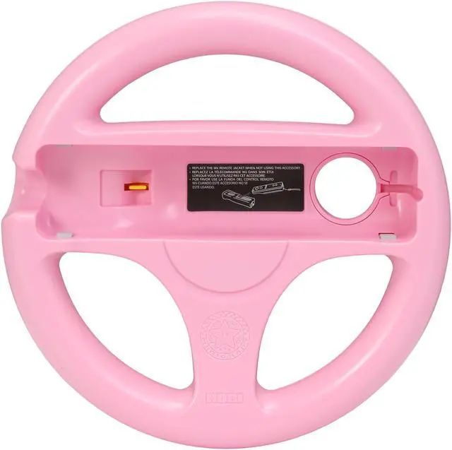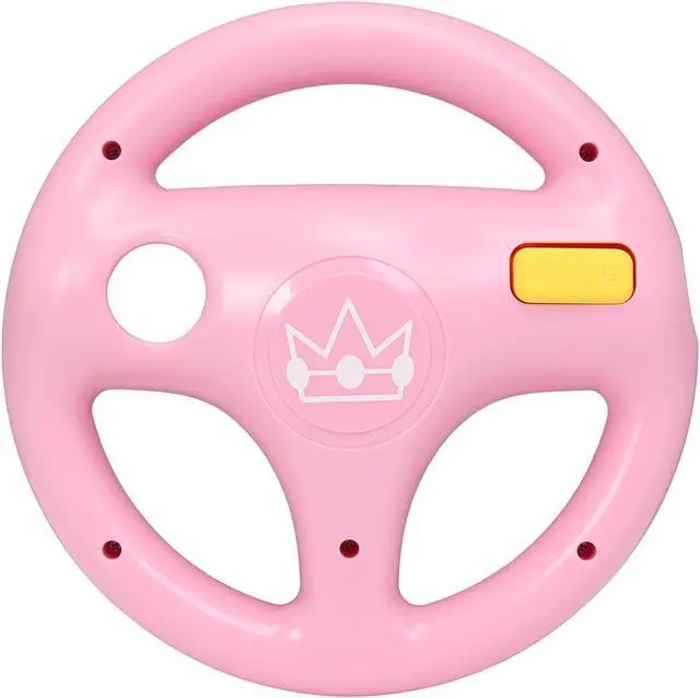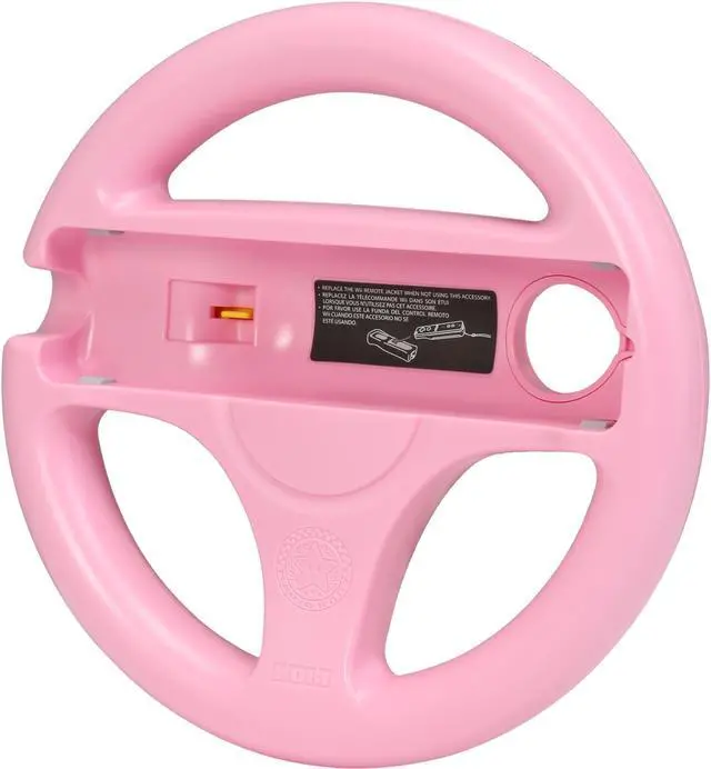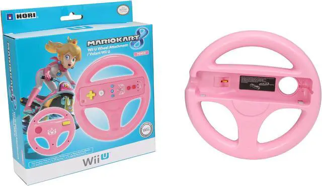 | Features | Blaze through Mario Kart 8's exciting courses with this colorful and comfortable racing wheel attachment. Simply pop your Wii U Remote (sold separately) into the racing wheel attachment and enjoy more realistic control and better grip. It's also equipped with a button on the back of the wheel for easy access to the B button during gameplay. Featuring Princess Peach themed colors and logos, this racing wheel is perfect for Mario Kart fans! Officially licensed by Nintendo. - Officially licensed by Nintendo - Princess Peach-themed Racing Wheel attachment for the Wii Remote - Equipped with a trigger button on the underside of the attachment to make the B button easily accessible - Optimized and designed to be used with Wii U Mario Kart 8 - Wii Remote (not included) |