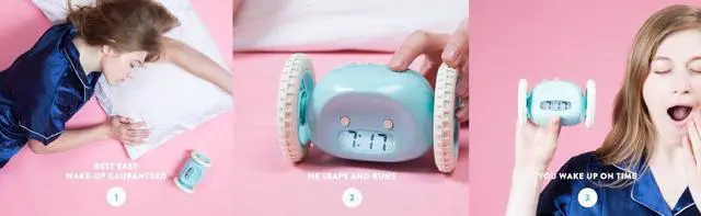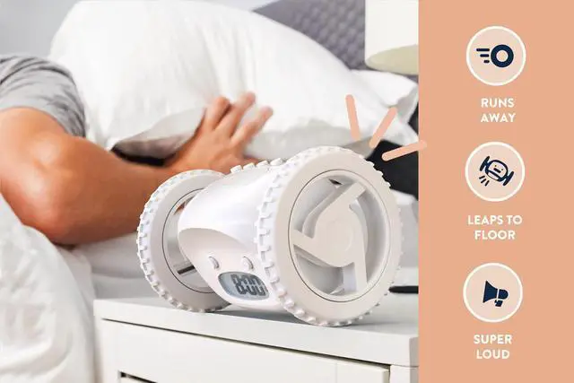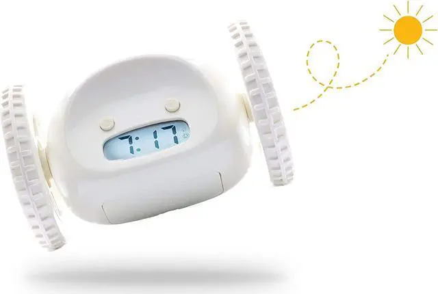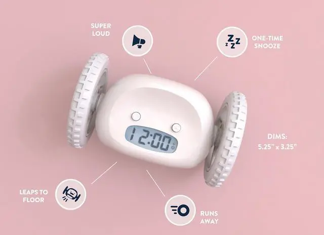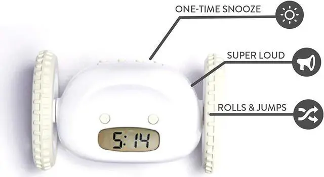 Do you abuse the snooze? Clocky (Clockie), the original Nanda alarm clock, the best wake-up call for heavy sleepers. Clocky is the only bedside rolling alarm clock that will run away, hide, chase, roll, wheel, beep, and jump. He's the funniest, most annoying alarm clock, loud enough to get you up on time. The perfect gift for graduation, college dorm room, back-to-school, or anyone starting a new job. Never be late again!