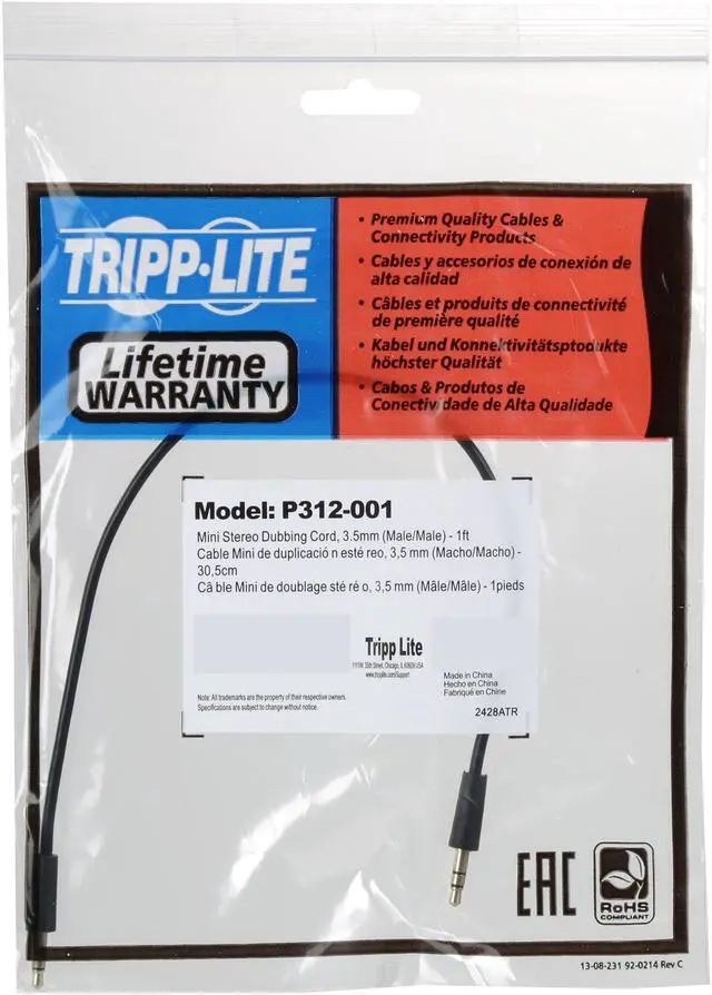 MAIN OVERVIEW FEATURES: Cable Type: Mini-phoneCable Length: 1 ftConnector on First End: 1 x Mini-phone Male Stereo AudioConnector on Second End: 1 x Mini-phone Male Stereo AudioConnector Plating: GoldFeatures: MoldedDevice Supported: Audio Device,Speaker,Headphone,MP3 Player,iPod,iPhoneColor: BlackEnvironmentally Friendly: YesEnvironmental Certification: RoHSLimited Warranty: Lifetime