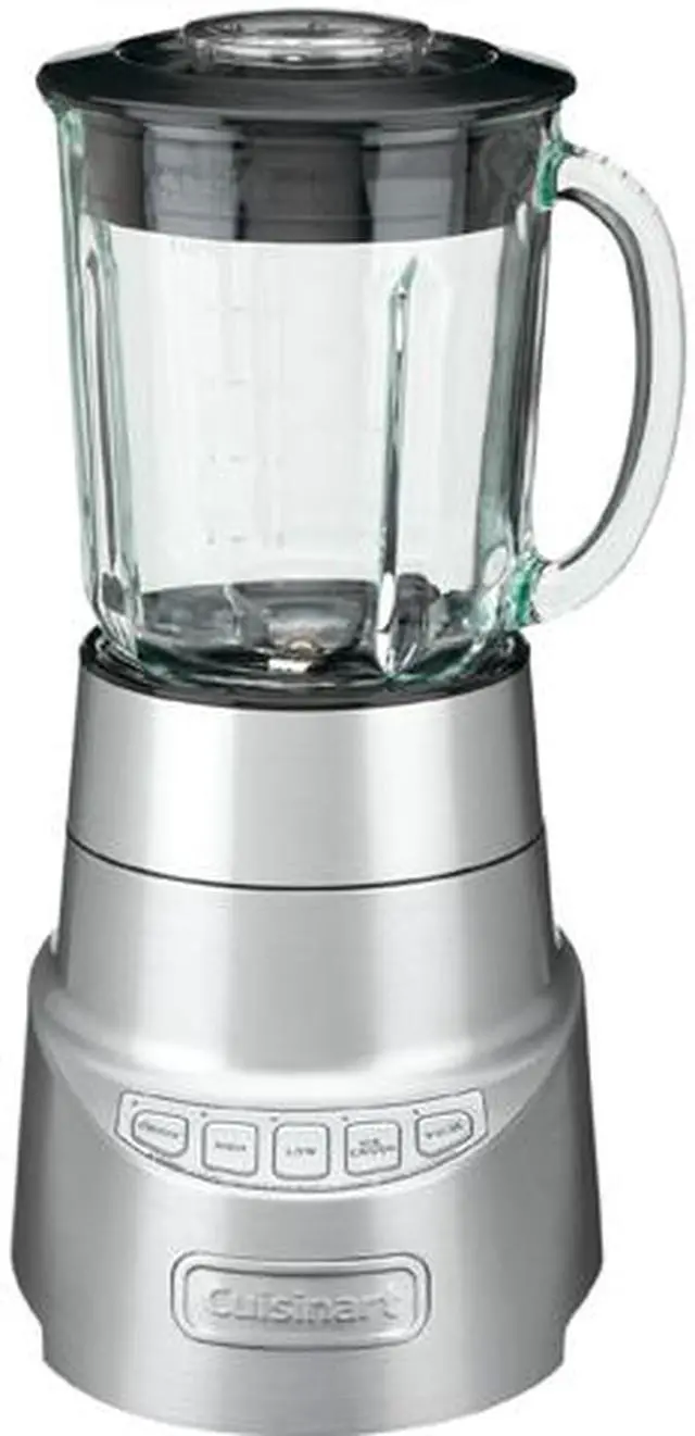 | Features | Cuisinart introduces the blender you've been waiting for! The new SmartPower Deluxe has all the features - and all the blending power - serious cooks need. Our stainless steel blade, large borosilicate glass jar, and Pulse at High or Low speeds let you do it all - mince delicate herbs, whip up smoothies or chop ice for a crowd! With its sturdy die-cast base, this blender can handle anything you toss at it - or into it. Product Features: Cutting-Edge Blade Design Features 4 surfaces designed to deliver superior blending performance! Versatile Performance High and Low speeds with Ice Crush - plus Pulse at either speed - for perfect results every time! Large Capacity Sturdy glass blender jar made of shock-resistant borosilicate glass holds up to 48 ounces (1.4 L), so you can prep ingredients for your favourite recipe or whip up smoothies for a crowd! Powerful Performance Heavy-duty 600-watt motor lets you crush ice, whip up smoothies, puree soups and so much more! Easy Cleanup All removable parts are dishwasher safe, and the base wipes clean in a snap! Commercial Styling Sturdy die-cast base won't "walk" on counter! Limited 3-Year Warranty |