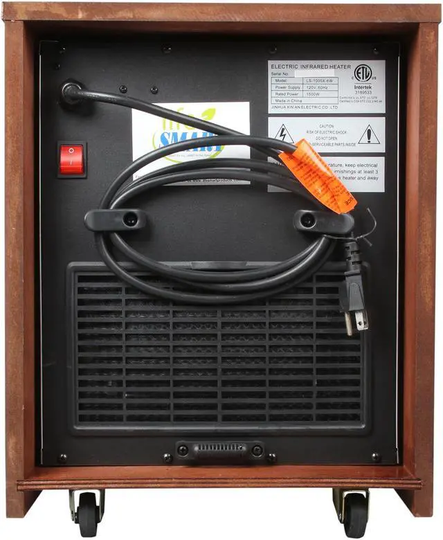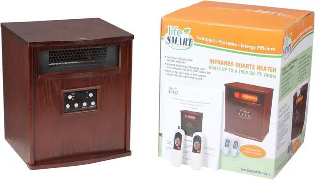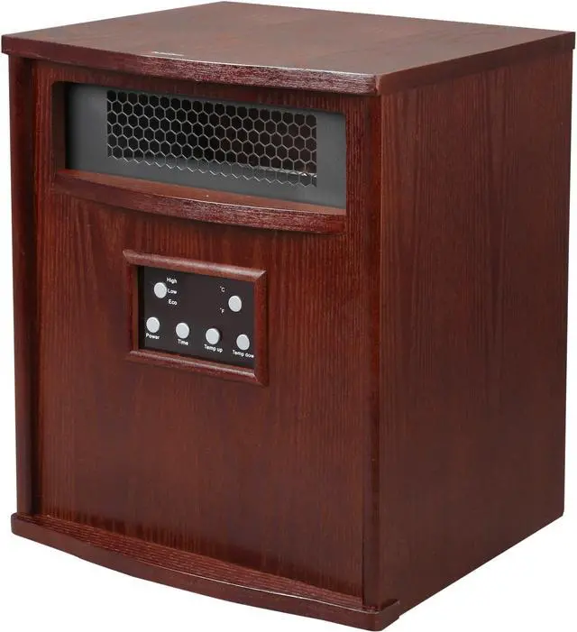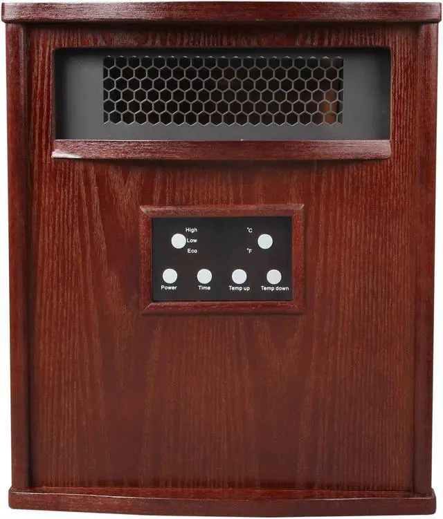 | Feature | 6 Infrared Heating Elements Control Panel with Digital Readout Raised Button Remote Control with LED Indicator 12 Hour Programmable Count Up or Down Timer Requires Standard 3-Prong, 120V Outlet Furniture Grade Wood Cabinet High/Low/ECO Modes Lifetime Washable Filter Master ON/OFF Power Switch Caster Wheels for Easy Portability Thermostat Control System Cord Storage Bracket Does Not Effect Room Humidity Powerful and Quiet Scroll Fan Cool Touch Exterior Safe for Kids and Pets |