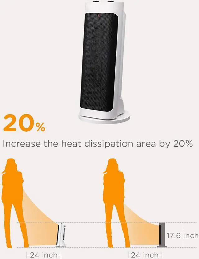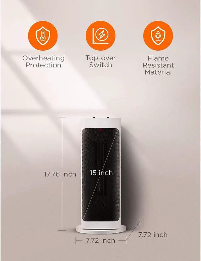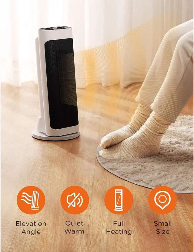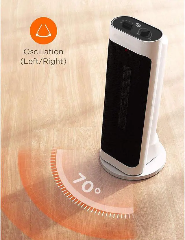 | Feature | The Ecohouzng Tower Ceramic Fan Heater houses 1500W ceramic elements for efficient heating, variable thermostat control and a choice of two heat settings; you have complete control over how warm you want the room to be. The heater also features an oscillating function and has an easy to see LED screen with room temperature display and safety functions for your peace of mind. With a handy remote control you don't even need to get off the couch to adjust the temperature. 2 Heat Settings: 900W/1500W Mechanical Rotary Knob Control Oscillating Function Adjustable Thermostat Overheat and Tip-over Protection Easy to Carry with Cool Touch Handle Unique Design Quiet Operation: 52dB Working Noise Power Indicator Light for Safety |