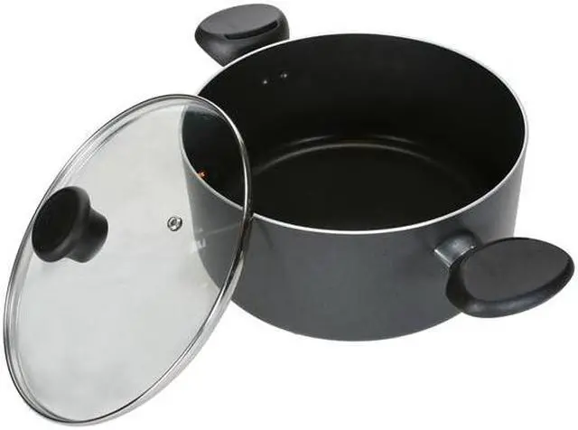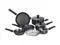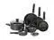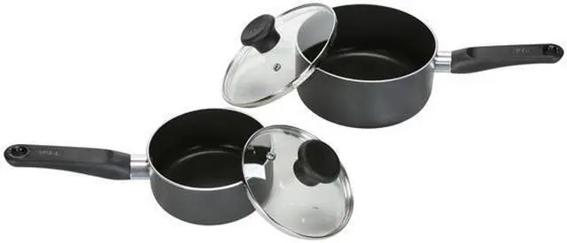 T-Fal Aluminum Cookware Set - 10-piece aluminum non-stick cookware set has tough plastic, ergonomic handles that stay cool on the stovetop and are oven safe to 350 degree F. Welded handles have no inside rivets to trap food. Bottom of pan resists warping for uniform heating without hot spots. Dishwasher and oven safe. Set includes: 7.5 In. fry pan, 9.5 In. fry pan, 11 In. fry pan, 1 Qt. covered sauce pan, 2 Qt. covered saucepan, 5 Qt. covered dutch oven, and a steamer. - Color: Gray, Non-Stick: Yes, Material: Aluminum, Pieces In Set: 10 Pcs., Handle Material: Plastic, Dishwasher Safe: Yes, Warranty: Lifetime, Pkg Qty: 1, Package Type: Box