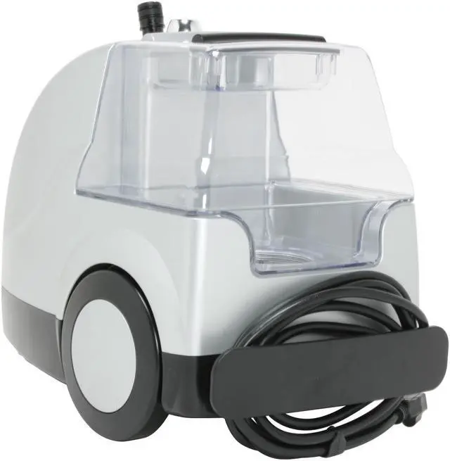 Easily snaps together when you need it, and unsnaps for quick storage! The 5-foot hose and steam head will just pop on and off, easily! All of the accessories fit in the on-board storage compartment, for convenient use! On/off function is foot operated, for quick action, since your hands are full with the garment and the steam head. The extra-large capacity water tank will switch off the machine when it gets empty.