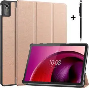Case for Lenovo Tab M10 5G 10.6 Inch 2023 TB-360ZU TB-360XU, Tri fold Slim Lightweight Hard Shell Smart Protective Cover with Multi-Angle Stand, Universal Stylus Pen Rose Gold