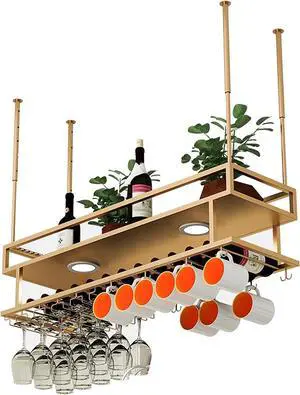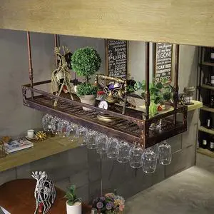 Hanging Wine Rack-Wine Bottle Rack Decoration,Wine Rack Wine Glass Rack, Upside Down Home Bar Creative Goblet Rack/Brown/60X30Cm (Brown 60X30Cm)
