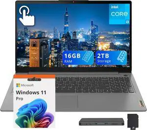 Lenovo Ideapad 3 15.6" FHD IPS Anti-Glare Touch Laptop, Intel Core i3-1115G4, 16GB DDR4, 2TB Storage (1TB SSD+1TB Docking Station Set), 720p HD Camera with Privacy Shutter, WiFi 6, Win 11 Pro, Grey