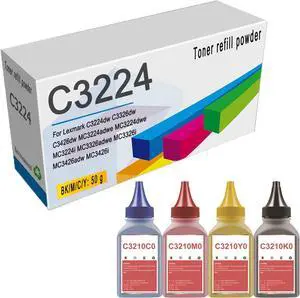C3224dw Toner Refill Powder Replacement for Lexmark C3224dw C3326dw C3426dw MC3224i MC3326i MC3426i Refill Toner Powder for C3210K0 C3210C0 C3210M0 C3210Y0,4 Pack-BK/C/M/Y
