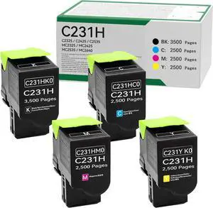 LeciRoba C231HK0 C231HC0 C231HM0 C231HY0 Toner Compatible Cartridge for Lexmark C2325 C2325dw MC2325adw C2535 C2535dw MC2535adwe C2425 C2425dw MC2425adw C2640 MC2640adwe Printer (4-Pack)