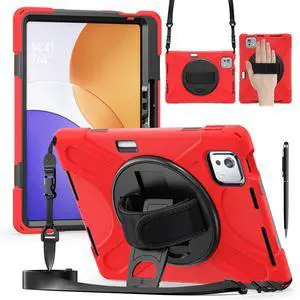 WERLEO Case for Xiaomi Pad 7S Pro 12.5 inch 2025 Shockproof Cover with Built-in Screen Protector 360 Rotate Stand Hand Strap Shoulder Strap Pencil Holder Red