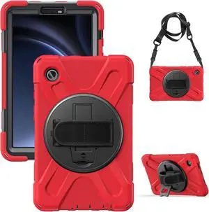 BONAEVER Shockproof Case for Samsung Galaxy Tab A9 Case 8.7 Inch 2023 SM-X110/SM-X115/SM-117 with Pen Holder & 360 Rotating Hand Strap/Shoulder Strap Stand and Protective Cover Red