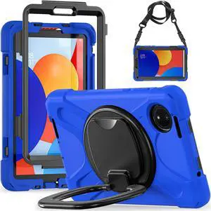 BONAEVER Case for Samsung Galaxy Tab A9 8.7 Inch 2023 SM-X110/SM-X115/SM-117 Rugged Military Grade Shockproof Cover with Rotatable Stand and Strap Shoulder Strap Pencil Holder Navy Blue
