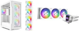 PCCOOLER CPS C3 T500 ARGB PC Case, Dual-Chamber Mid-Tower ATX Case, Desktop Computer Case w/ 6 ARGB Fans Pre-installed w/ Fan Hub, Column-Free Design, Tempered Glass, USB 3.1 Gen 2 Type-C, White and PCCOOLER CPS DC360 Pro ARGB Display AIO CPU Liquid Cooler, 360mm Radiator, 310W TDP, Customizable 2.4" IPS LCD Display, Ceramic Bearing, for Intel LGA 1851/1700/1200/115X & AMD AM5/AM4, White - $274.98