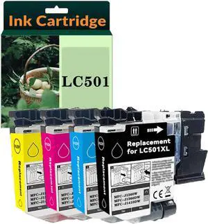LC501 XL Ink Cartridges High Yield Compatible LC 501 for Brother MFC-J1260DW, MFC-J1360DW, MFC-J1410DW Printer LC501XL Ink Cartridge(Black, Cyan, Magenta, Yellow, 4 Pack)
