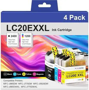Compatible LC20E XXL Ink Cartridge Replacement for Brother LC20E XXL LC20EXXL High Yield Ink Cartridges for MFC-J5920DW MFC-J775DW MFC-J775DW XL MFC-J985DW MFC-J985DW XL Printer (4 Pack)
