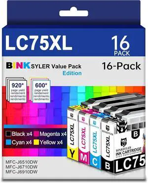 16PKS LC75 Ink Cartridges XL High Yield for Brother LC71 LC75XL LC79 XXL LC-71 LC-75 LC-79 (4BK/4C/4M/4Y)
