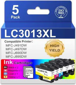 LC3013XL LC3013 2BK/1C/1M/1Y Ink Cartridges High Yield Compatible Ink Cartridges Replacement for Brother LC3013 XL LC3013 with MFC-J497DW MFC-J895DW MFC-J491DW MFC-J690DW Printer (5-Pack)