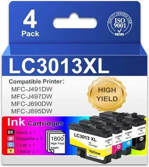 LC3013XL LC3013 BK/C/M/Y Ink Cartridges High Yield Compatible Ink Cartridges Replacement for Brother LC3013 XL LC3013 with MFC-J497DW MFC-J895DW MFC-J491DW MFC-J690DW Printer (4-Pack)