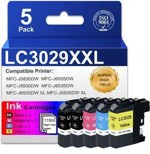LC3029 LC3029XXL Ink Cartridges Super High Yield (5-Pack, 2BK/C/M/Y) Compatible Ink Replacement for Brother LC3029 Ink with MFC-J5830DW, MFC-J5830DW XL, MFC-J5930DW, MFC-J6535DW, MFC-J6935DW Printer