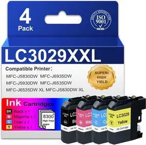 LC3029 LC3029XXL Ink Cartridges Super High Yield (4-Pack, BK/C/M/Y) Compatible Ink Replacement for Brother LC3029 Ink with MFC-J5830DW, MFC-J5830DW XL, MFC-J5930DW, MFC-J6535DW, MFC-J6935DW Printer