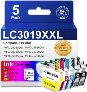 LC3019 LC3019XXL Ink Cartridges Super High Yield (5-Pack, 2BK/C/M/Y) Compatible Ink Replacement for Brother LC3019 XXL LC3019 LC3017 with MFC-J5330DW, MFC-J6530DW, MFC-J6930DW, MFC-J6730DW Printer