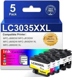 LC3035 LC3035XXL Ink Cartridges Super High Yield (5-Pack, 2BK/C/M/Y) Compatible Ink Cartridges Replacement for Brother LC3035 XXL LC3035 3017 with MFC-J995DW MFC-J815DW MFC-J805DW Printer