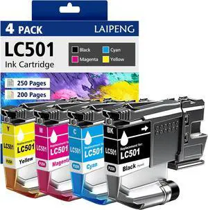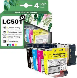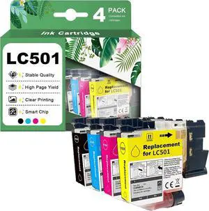 LC501 Ink Cartridges (4-Pack, BK/C/M/Y) Compatible Ink Cartridges Replacement for Brother LC501 Ink with MFC-J1260DW MFC-J1360DW MFC-J1410DW Printer