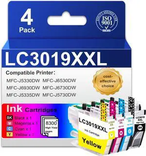 LC3019 LC3019XXL Ink Cartridges (4-Pack, BK/C/M/Y) Compatible Ink Cartridges Replacement for Brother LC3019 XXL LC3019 LC3017 with MFC-J5330DW, MFC-J6530DW, MFC-J6930DW, MFC-J6730DW Printer