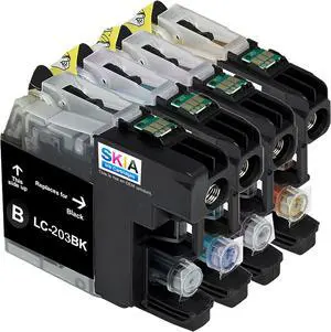 Skia Ink Cartridges Compatible Ink Cartridge Replacement for Brother LC201, LC203 (Black / Cyan / Magenta / Yellow / 4 Pack)