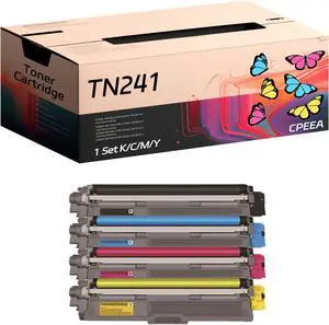 Compatible for Brother TN241 TN245 Toner Cartridge Work for Brother HL-3172CDW MFC-9130CDN MFC-9130CW MFC-9140CDN MFC-9142CDN MFC-9330CDW MFC-9332CDW MFC-9340CDW Printers (4-Pack BK/C/M/Y)