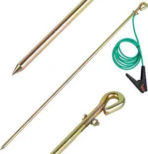 32inch Portable Ground Rod with 6.5ft 12AWG UL Listed Grounding Wire with Crocodile Clip,Great for Electric Fences,Antennas,Generator,Ground Post Pin(Grounding Rod with 6.5ft Wire)