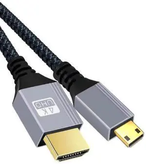 BUCIER Mini HDMI to HDMI Cable 6.6FT,for HDTV, Tablet, Camera and Camcorder [Aluminum Shell, Nylon Braided] (4K 60Hz) High Speed HDMI to Mini HDMI Male Bi-Directional 2.0 Cord