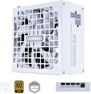 Lian Li RS 1200W Rotational Shift Fully Modular ATX Power Supply (W/ USB Fan Hub) 90° AC Inlet, Cybenetics Platinum, 80+ Gold, ATX 3.1, PCIe 5.1, 12V-2×6 Cable, 10 Year Warranty, White (RS1200G.WH)