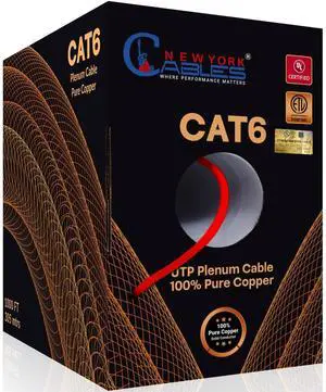 NewYork Cables Cat6 Plenum | Cat 6 Ethernet Cable 1000ft (CMP) UL- ETL Certified 100% Pure Copper Cat 6 Cable 1000ft (White, 1000 Feet)