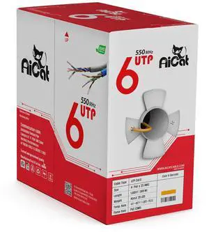 AAA CMP Cat6 Plenum Cable 1000ft | 0.58MM Solid Conductor | DTX-1800 Fluke Test Passed | 23AWG Ethernet Plenum Cat 6 Cable | UTP Unshielded Twisted Pair | 550MHz Blue Cat 6 Plenum Cable